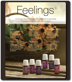 The Feelings™ collection features six essential oil blends that inspire feelings of emotional well-being when diffused. Use in the morning and evening to promote peaceful thoughts and spiritual harmony. The Feelings Collection Includes: Harmony™, 5 ml, Forgiveness™, 5 ml, Inner Child™, 5 m, Present Time™, 5 ml, Release™, 5ml, Valor II™, 5 ml
